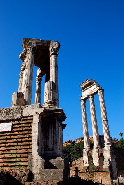ギリシア神殿を彷彿させる、双子神の神殿(右)とヴェスタの神殿