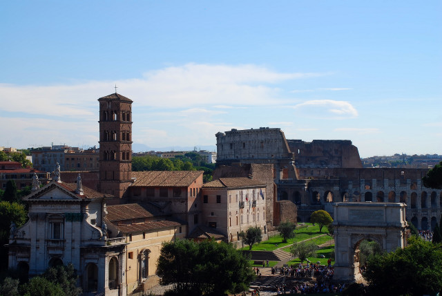 ティトゥスの凱旋門を抜け、聖なる道沿いに教会やバジリカ、神殿の遺跡が立ち並ぶ。