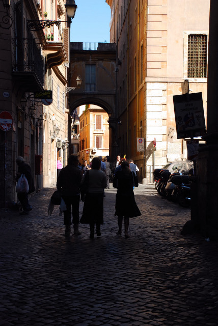 カンポ・ディ・フィオーリ広場前の道。あのアーケードを超えれば広場へと出る。