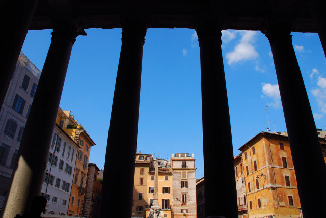 パンテオンから見るオベリスク。古代ローマの空も同じ色をしていたのだろうか・・・